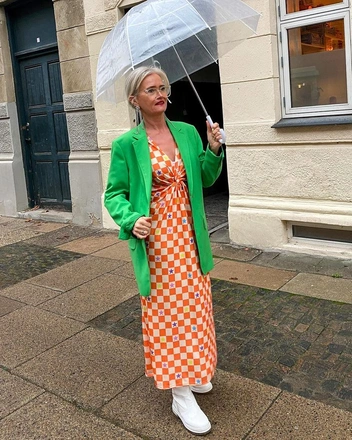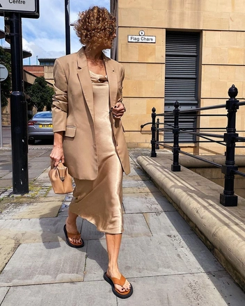 Если вы хотите надеть платье с открытыми плечами или на тонких бретелях, но комплексуете из-за полных рук, то есть отличное решение — добавить к платью oversize-жакет или объемный кардиган. Этот же метод подойдет и тем, кто хочет скрыть живот или бедра. Можно выбрать жакет контрастного оттенка платью или базовый белый, бежевый или серый. Надевая жакет и платье в одной цветовой гамме, вы рискуете испортить фигуру и прибавить к талии и бедрам лишние сантиметры (читайте также: С чем носить черный пиджак: 8 нескучных идей).