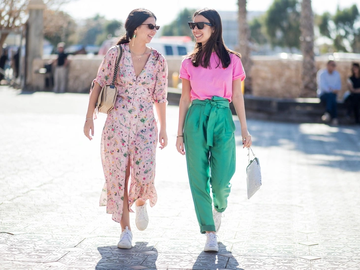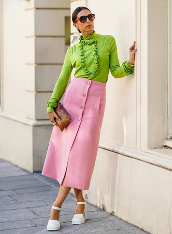 Несомненно, любой сложный цвет легко будет сочетаться с ахроматическими цветами — черным, серым и белым. Но одним из самых популярных сочетаний в этом сезоне стал розовый + зеленый. Это комплементарное сочетание, которое просто не оставит вас незамеченной, — оно смотрится свежо и красиво.