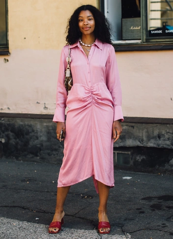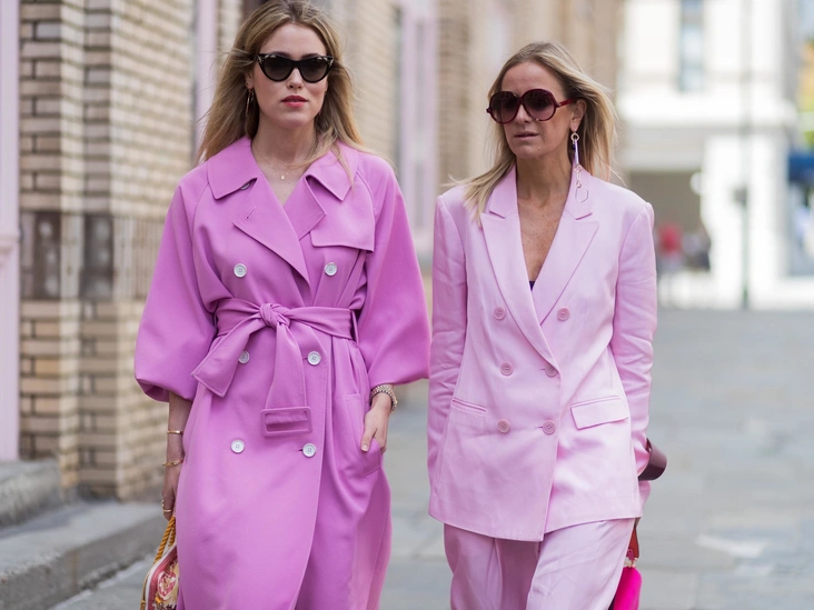 Вариантов сочетаний множество: попробуйте носить розовый с голубым, синим, оранжевым, фиолетовым и даже желтым. Или создайте монохромный образ из разных оттенков розового.