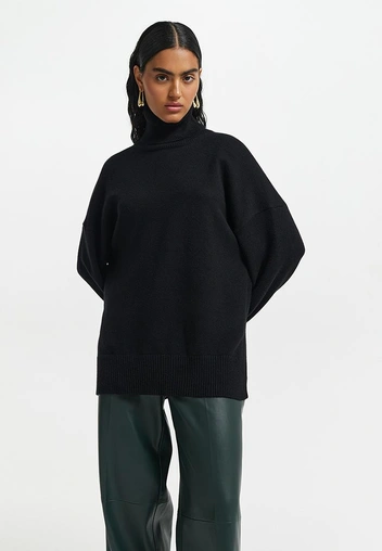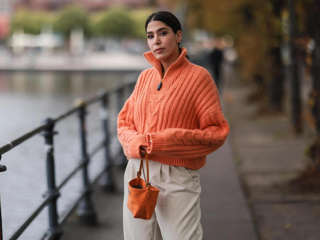 Заправьте свитер в брюки или юбку на высокой посадке, слегка выпустив ткань и создав стильный объем.