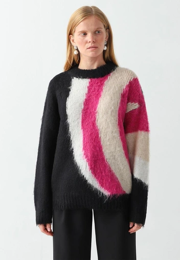 «Поселите» в своем гардеробе и яркий свитер — его лучше комбинировать со спокойным низом, например, базовыми брюками, джинсами или юбкой. Чтобы образ получился гармоничным, сочетайте акцентный трикотаж с лаконичными аксессуарами и украшениями.