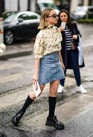 Чтобы приглушить романтичный образ и сбавить градус чрезмерной беззаботности, дополните легкие струящиеся платья и летящие юбки с цветочным принтом байкерскими ботинками, казаками или спортивными кедами – модно и удобно.