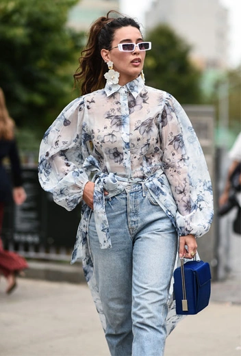 Oversize-жакет или мужской пиджак с объемными плечами отлично дополнит образ с флористическими принтами. Грубый верх смотрится еще интереснее поверх шелковых легких платьев и хорошо сочетается с брюками в романтичный цветок.
