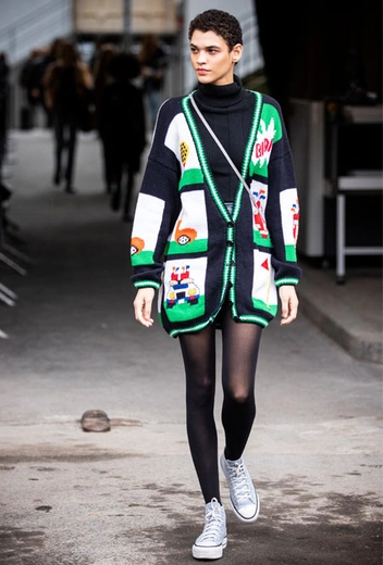 Идеальный вариант для тех, кто особенно часто мерзнет. Подойдут как кардиганы одного оттенка, так и яркие варианты с вышивками и орнаментами. Если боитесь слишком замысловатых сочетаний и любите сдержанность, выбирайте ахроматические ансамбли.