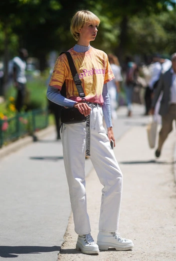 Высказывание о том, что водолазка является предметом исключительно классического гардероба, — большое заблуждение. Такая вещь идеально подойдет даже для спортивных и практичных образов. Пример — наряды стритстайл-блогеров, состоящие из яркой принтованной водолазки, свободных брюк (чаще — джоггеров) и сникерсов. Этим сочетанием активно пользуется и одна из главных модных инфлюенсеров Ким Кардашьян. К слову, поверх водолазки можно надеть футболку с принтом, сделав удобный образ еще более необычным (читайте также: Звездные кроссовки: почему селебрити так любят бренд Veja).