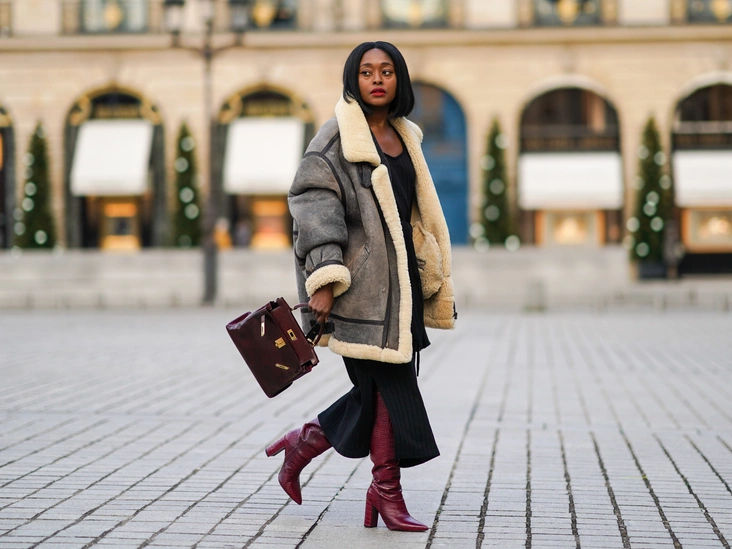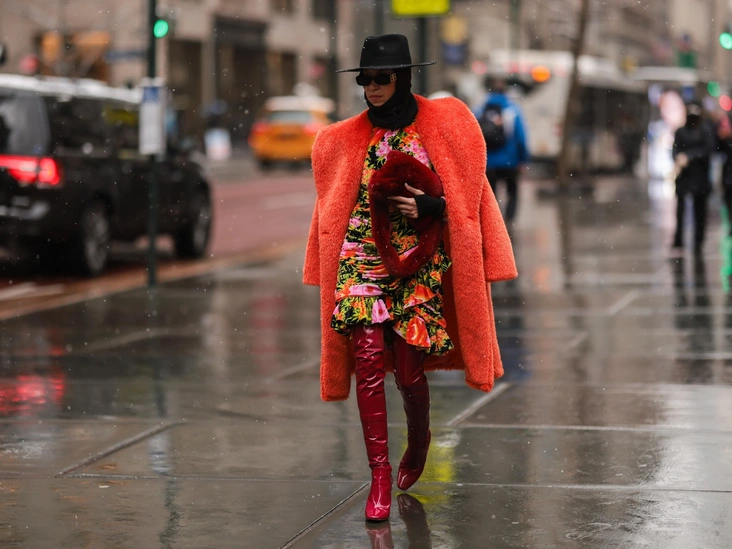 В стилизации длинной объемной шубы и ботфортов обращайте внимание на то, чтобы обувь заходила под верхнюю одежду. Выигрышно аутфит смотрится и за счет комбинации фактур: матового рыхлого ворса шубы и гладкой кожи сапог. Этим приемом пользуются все знаменитости, поэтому попробуйте его и вы. Присмотритесь к ботфортам на каблуке или тракторной подошве и выберите яркий неоновый оттенок, ведь зимняя обувь может быть и не только черного цвета (читайте также: Самые модные сапоги на зиму 2023/24 — они выглядят эффектно и дорого).