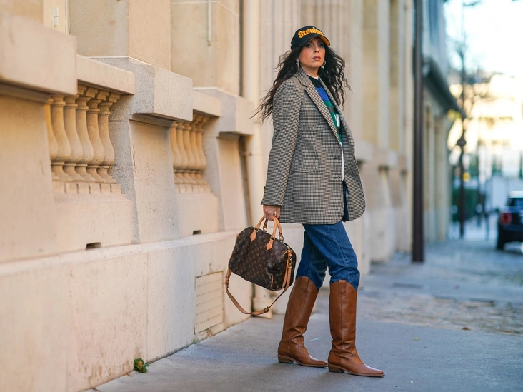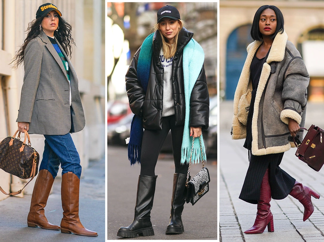 Заправьте плотные джинсы или классические широкие брюки в высокие сапоги, так вы получите трендовый аутфит, на который осмелится не каждая девушка. Этот лук стал самым любимым среди стилистов и фэшн-инфлюенсеров — этим девушкам важно выделяться и быть в центре внимания. Чтобы повторить аутфит, выберите объемные брюки или джинсы и слегка выпустите их на верхнюю часть сапог (читайте также: Запретный плод: как королевские особы носят джинсы). В таком образе необходимо соблюдать баланс: пусть все остальные элементы одежды будут силуэтными и облегающими.