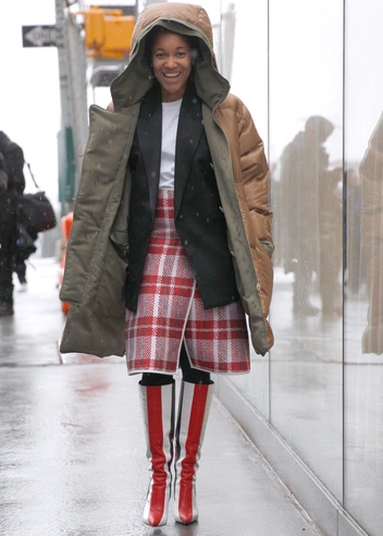 Высокие сапоги будут надежной защитой от сырости и холода, так что не скупитесь, подбирая стильные и удобные модели на зиму. Позаботьтесь о том, чтобы у сапог была достаточно толстая подошва и они не промокали, чтобы по-настоящему обезопасить себя от непогоды, и носите их с юбками средней длины — в этом сезоне такое сочетание будет наиболее актуальным. Монохромные комплекты тоже будут смотреться выигрышно. Чтобы выглядеть как Хейли Бибер, Белла Хадид и другие героини стритстайла, дополните образ солнечными очками и геометричной сумкой.