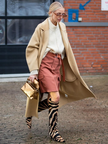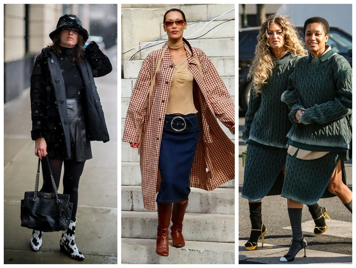 Высокие сапоги будут надежной защитой от сырости и холода, так что не скупитесь, подбирая стильные и удобные модели на зиму. Позаботьтесь о том, чтобы у сапог была достаточно толстая подошва и они не промокали, чтобы по-настоящему обезопасить себя от непогоды, и носите их с юбками средней длины — в этом сезоне такое сочетание будет наиболее актуальным. Монохромные комплекты тоже будут смотреться выигрышно. Чтобы выглядеть как Хейли Бибер, Белла Хадид и другие героини стритстайла, дополните образ солнечными очками и геометричной сумкой.