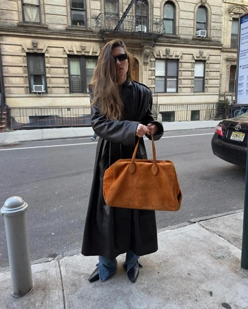 В этом сезоне селебрити и инфлюенсеры отдают предпочтение замшевым макси-сумкам, особенно бохо-моделям с бахромой, а также ремням и перчаткам из этого материала. Для деловых девушек главным выбором станет вместительный тоут с длинными ручками, для it-girl кросс-боди или багет из темной замши. Если вы устали от главного зимнего колора, то присмотритесь к опциям коричневого, графитового, темно-синего или темно-зеленого оттенков.