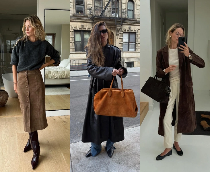 Отдельно стоит обратить внимание на замшевые пальто и куртки с актуальными меховыми деталями: рукавами или воротом. Такая верхняя одежда поможет вписаться сразу в несколько трендов: «тихая роскошь», меховые акценты в стиле Slavic core, винтажные отсылки к восьмидесятым и, конечно, моду на замшу (читайте также: Минимализм, в который влюблены все: как Дженнифер Лоуренс стала новой королевой стритстайла).