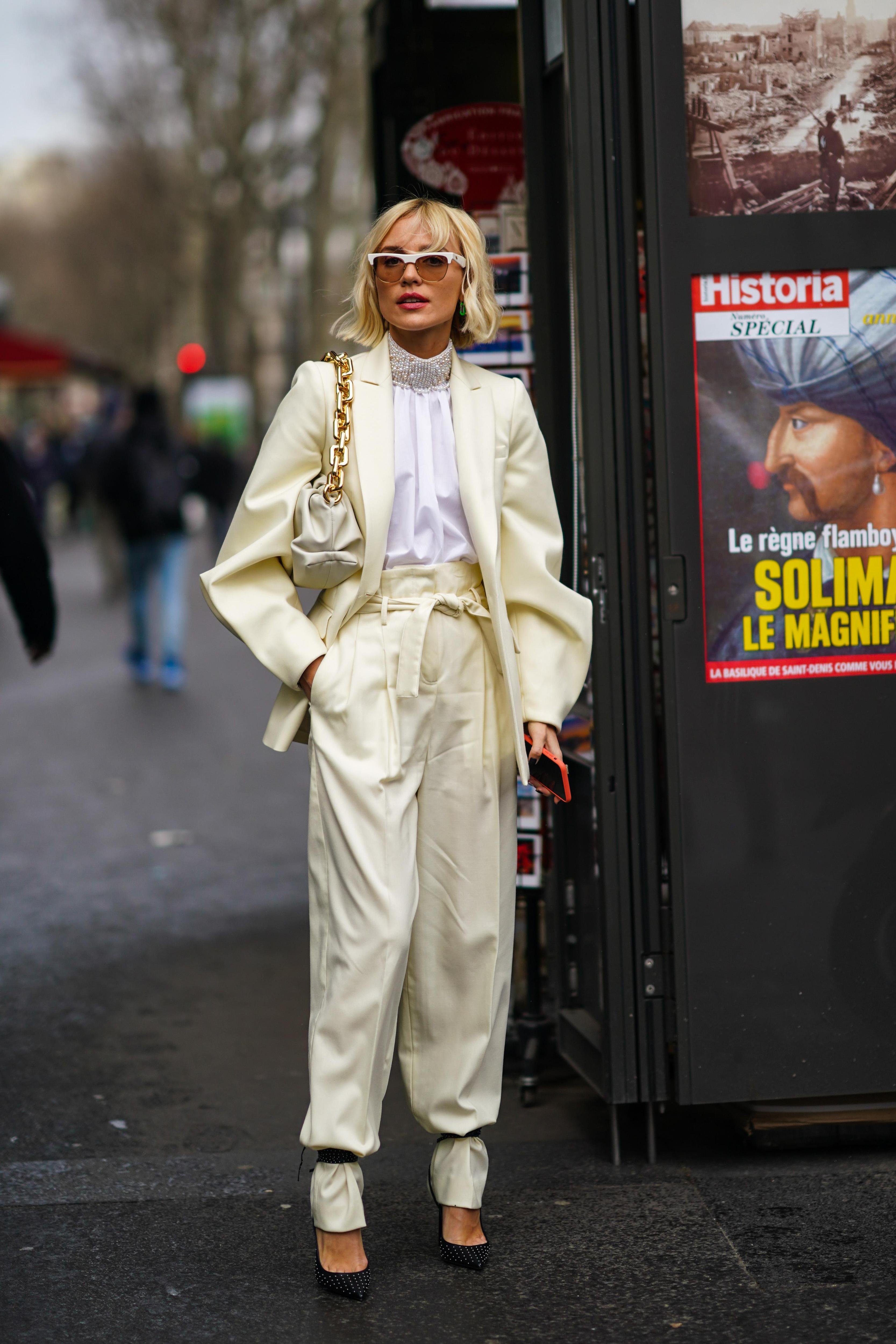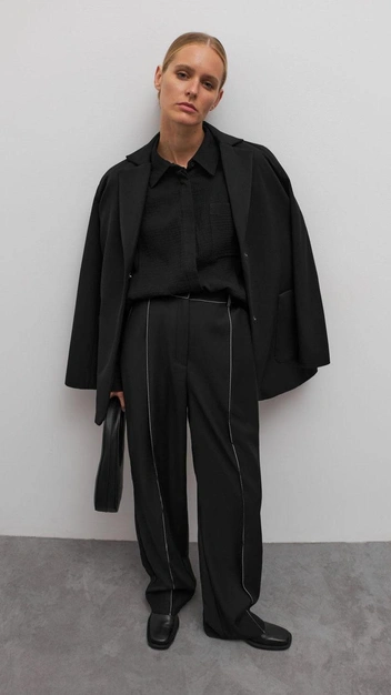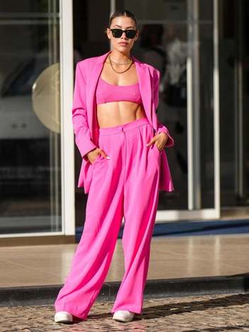 Брючный костюм смело пробрался в женский гардероб и стал модной классикой, следовать которой хочет каждая из нас. Выберите комплект свободного кроя, примерив широкие брюки и пиджак прямого силуэта, так вы сделаете образ стильным и при этом непринужденным. Надеть костюм можно как на голое тело, застегнув все пуговицы, так и на яркий топ или объемную рубашку. Сочетайте аутфит с невесомыми босоножками в акцентном цвете, с грубыми ботинками или элегантными туфлями.