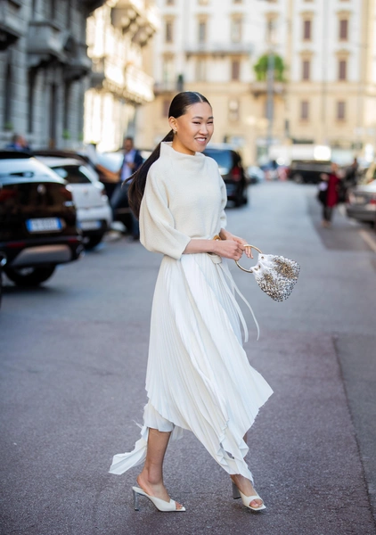 Дополните образ остроносыми балетками или туфлями с квадратным мысом, но заранее позаботьтесь о том, чтобы в обуви вам было комфортно — обойти на шпильках все залы Третьяковской галереи у вас просто не хватит сил. Поскольку музей все же исключает вечерний дресс-код, вы можете смело сочетать образы с лаконичными кедами, которые будут смотреться женственно и романтично (читайте также: Как носить костюм, чтобы не выглядеть скучно и нелепо: главные ошибки и заблуждения).