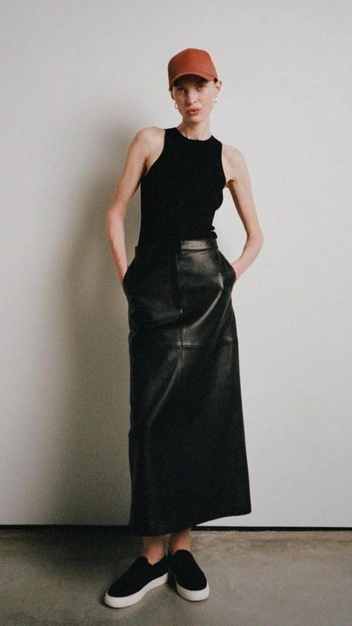 В этом сезоне модельеры предлагают носить девушкам длинные юбки из кожи, денима или трикотажа — именно так мы почувствуем дух нулевых и попытаемся повторить моду вновь вернувшейся эпохи. Лучше всего сочетать такой фасон с базовым трикотажным топом, который позволит сбалансировать объемный низ и сделать образ повседневным. Селебрити стилизуют юбки длиной макси с винтажными кедами, что мы рекомендуем попробовать и вам. Не забудьте завершить выход украшениями: наденьте массивные золотые серьги и широкие браслеты.