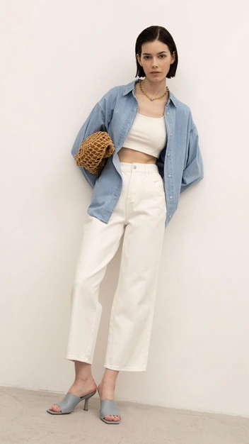 Для тех, кто не готов наряжаться, но при этом желает выглядеть стильно, есть еще один модный образ, в котором смело можно пойти в любимый музей. Наденьте стильные джинсы и сочетайте их с рубашкой «с мужского плеча». Верх может быть классический хлопковый в базовых цветах или, например, из денима. Расстегните верхние пуговицы рубашки, наденьте сверху галстук или попробуйте накинуть рубашку на лаконичный топ — здесь идеальное пространство для модных экспериментов.