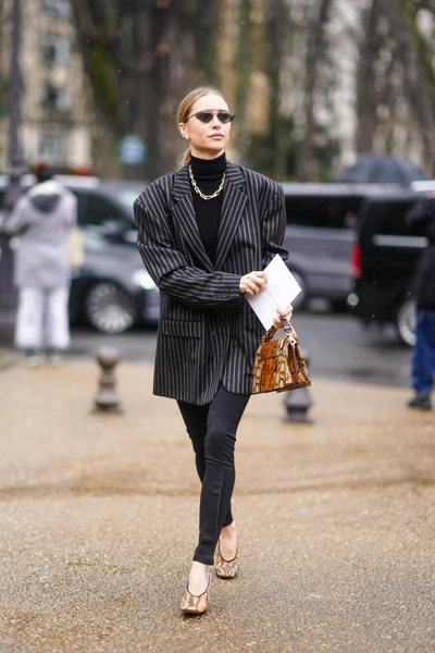 Чересчур широкие вещи зрительно укорачивают силуэт и прибавляют лишние объемы в области талии и бедер. Но расстаться с оверсайзом в 2023 году нам кажется невозможным — он выглядит стильно и удобно (читайте также: Как носить костюм, чтобы не выглядеть скучно и нелепо: главные ошибки и заблуждения). Чтобы не отказывать себе в удовольствии, выбирайте всего один безразмерный элемент в образе и всегда старайтесь подчеркнуть изящные части тела: запястья, щиколотки, талию, лебединую шею.
