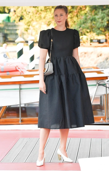 Например, если вы выбирайте топ с квадратным вырезом, желательно уравновесить объем наверху с помощью объемного низа, брюк-палаццо или юбки со складками. А при выборе оверсайз-верха, желательно не забывать о линии талии и подчеркивать ее, например, с помощью пояса.
