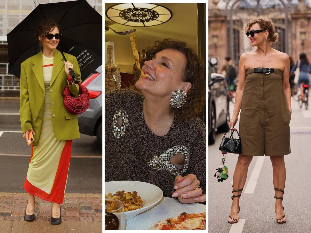 Одним из любимых приемов Рении является сочетание различных текстур и материалов в аксессуарах. Например, она комбинирует гладкие металлические украшения с текстурной кожей или деревянными элементами, что создает необычные визуальные эффекты и добавляет глубину образу. Акцентные сумки и обувь также играют важную роль: яркие, структурные модели, которые придают завершенность каждому луку (читайте также: Расставляем акценты: 11 модных украшений на 2025 год, которые сделают образ ярче).