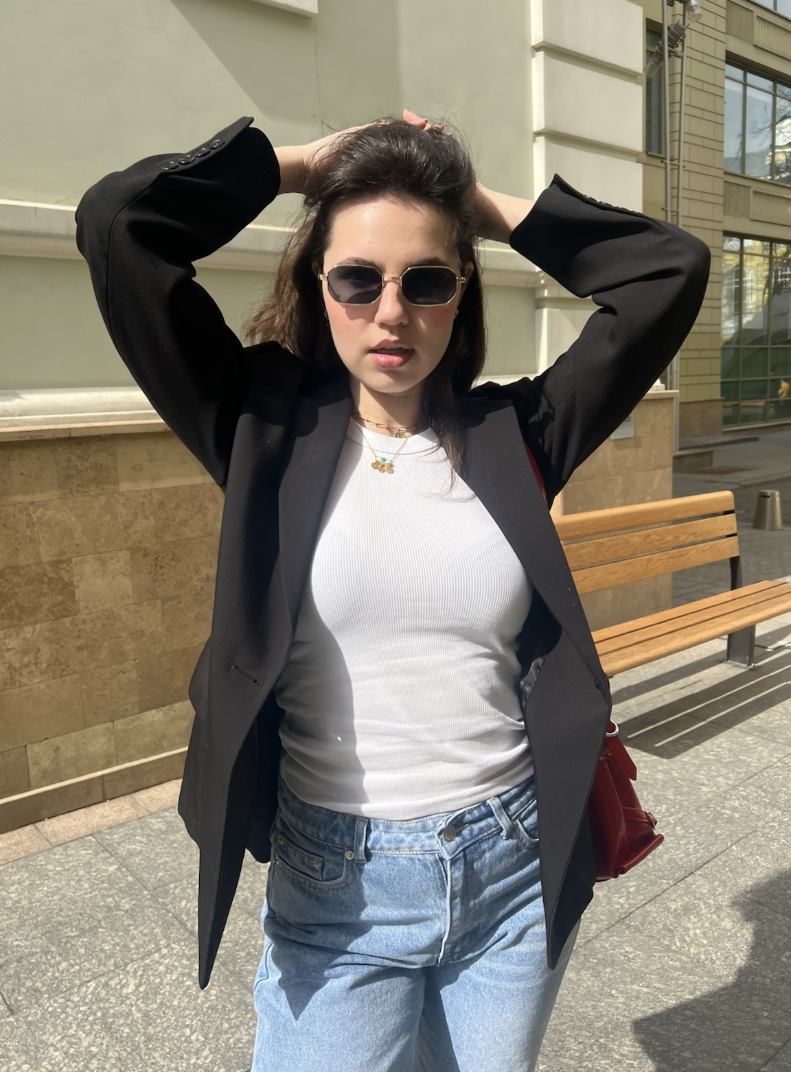 Мне кажется, к своему стилю я пришла совсем недавно. Хотя с детства любила моду и мне казалось, что я всегда хорошо одевалась. На самом же деле, это долгий путь, потому что иногда сложно отличить то, что нравится именно тебе от навязанных трендов. Для меня в первую очередь важен комфорт, поэтому, думаю, что у моих образов достаточно расслабленное настроение — оверсайз силуэты и базовые цвета. В то же время, люблю винтажные вещи, особенно аксессуары!