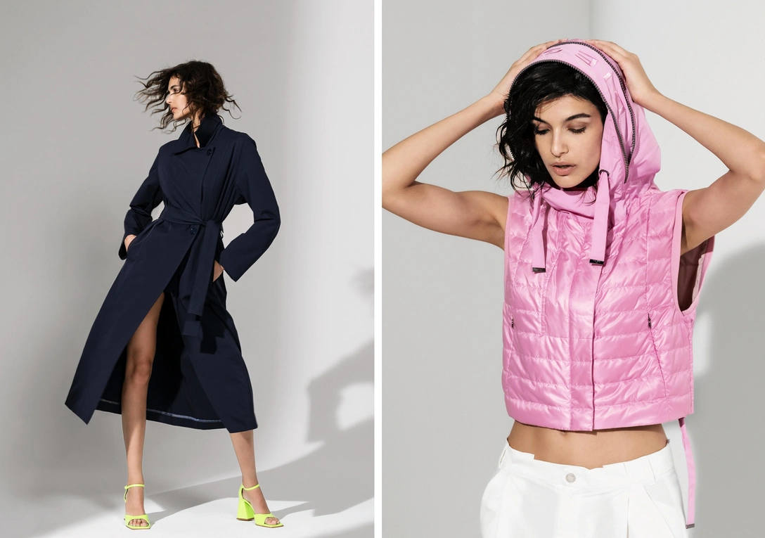 Среди моделей выделяются тренчи с их свободными силуэтами и непринужденными формами. В коллекции представлены модели разной длины и объема, от плаща из водонепроницаемого, шелковистого на ощупь хлопка до изысканного и элегантного тренча из ткани би-стрейч.