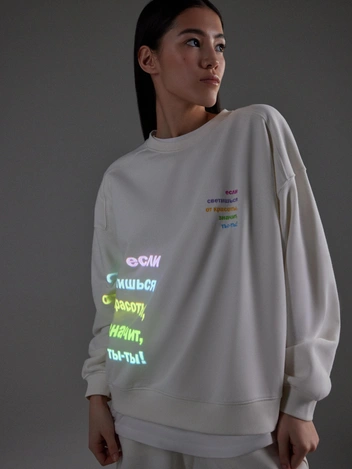 Капсула sela x Рита-Риторика представлена комфортными женскими футерными костюмами из свитшотов и шортов. Каждая вещь украшена патчем со стихами поэтессы. Также в коллекции есть удобный хлопковый шоппер с жизнеутверждающей цитатой от поэтессы.