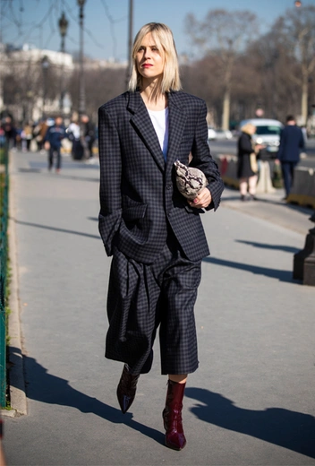 На теплое время можно присмотреть себе костюм с шортами-бермудами — правда, с наступлением холодов выпускать на арену можно будет только жакет. Альтернативой могут стать костюмы с брюками-кюлотами. Перед покупкой их всегда стоит примерить, даже если вы уверены в своих параметрах, и сразу думать о том, с какой обувью мы будем сочетать: брюки такой сложной длины часто подкидывают неожиданные сюрпризы в виде неправильных пропорций и укороченного силуэта.
