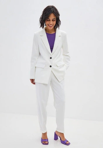 Если при примерке на жакете или брюках образуются складки, которые там не должны быть — смело отдавайте вещь обратно консультанту. Сложно найти человека, который все же похудел ради брюк, или, наоборот, нашел способ избавиться от лишних сборок на жакете там, где их по задумке быть не должно. Однако если вы настроены решительно, и мысли об этом костюме не дают вам спать по ночам, не стоит ломать свой режим дня и грустить под меланхоличные песни — костюм на размер больше отдайте в ателье для корректировки, а брючную пару на размер меньше лучше взять за основу для своего собственного дизайна (опять же в тандеме со швеей).