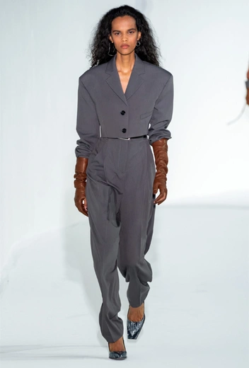 Хотя на подиумах они появляются с меньшим постоянством, последнее время их было представлено и правда много. Они идеально сочетаются с брюками с завышенной талией, легко встают в пару к палаццо, сигаретам, скинни или бананами — в общем, несмотря на меньший ассортимент по сравнению с удлиненными вариантами, покупка стоит того. При выборе в первую очередь определите, с каким низом вы будете носить его — такой жакет не должен быть короче пояса брюк. Для вдохновения посмотрите на Амаль Клуни: в ее гардеробе тоже есть парочка укороченных жакетов, которые не выглядят скучно. Их она сочетает и с зауженными брюками, и с клеш, и с палаццо — смотрится одинаково круто во всех вариациях: «Нескучный офисный стиль Амаль Клуни: 6 правил от звездного юриста».