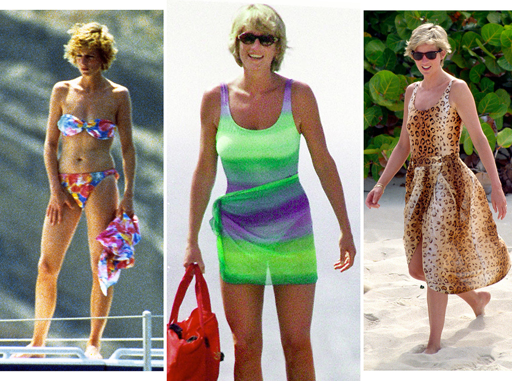 Логичным продолжением стиля леди Ди, над которым колдовала модный директор британского Vogue Анна Харви, стали пляжные образы королевы сердец. Каждое появление принцессы Уэльской на пляжах разной степени закрытости магнитом притягивало рой папарацци, а фотографии стройной Дианы неизменно украшали первые полосы газет по всему миру. Несмотря на проблемы с питанием, Диана обладала привлекательной, ортодоксально женственной фигурой: аккуратный бюст, тонкая талия, плавная линия бедер. Леди Ди совершенно не боялась собственной привлекательности и точно знала, что с ней делать. Точнее, как ее обрамлять — в том числе и тогда, когда на ней не было ни широких жакетов, ни строгих карандашей.