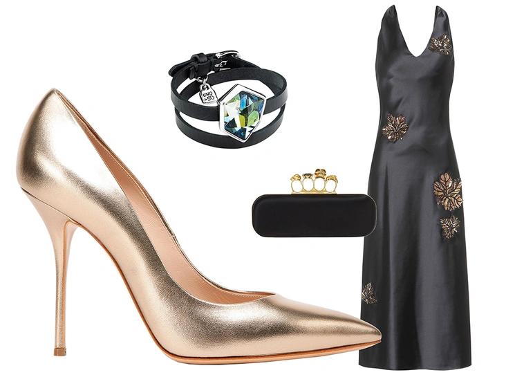 Вечернее платье, согласно канонам, терпит рядом с собой только одну пару обуви — лодочки. Правда, при всей формальной строгости Black Tie, туфли совсем не обязательно должны быть скучными: декор и аппликации не возбраняются.