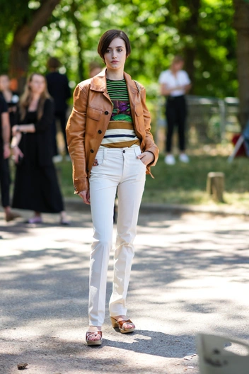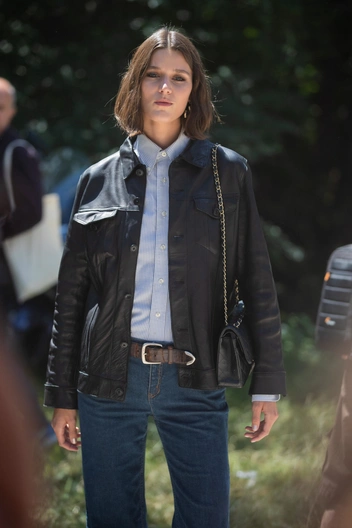 По мнению многих, кожаная куртка подходит только сторонникам стиля гранж, однако модные бренды не усыпают каждую модель шипами и рисунками, а делают самые разные модели. В том числе и те, что понравятся поклонницам женственного стиля. Например, кожаная куртка с поясом. Благодаря акценту на талии аутфит не получится громоздким и угловатым, а наоборот подчеркнет тонкую талию и сделает образ более сбалансированным. Это идеальная пара для легкого платья, юбки карандаша или модели плиссе длины миди (читайте также: Юбки-плиссе снова в моде: 5 простых сочетаний, которые нужно повторить сейчас).