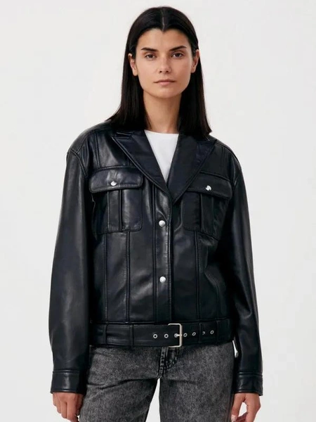 Базовая куртка прямого кроя на пуговицах — прекрасное вложение, которое непременно окупится. Такие модели обожают француженки и носят их каждый день. Классическая кожаная куртка в минималистичном стиле станет прекрасным спутником любого повседневного лука: она гармонично смотрится с любимой парой денима, дополняет наряд с чайным платьем и грамотно завершает лук с юбкой-карандашом.