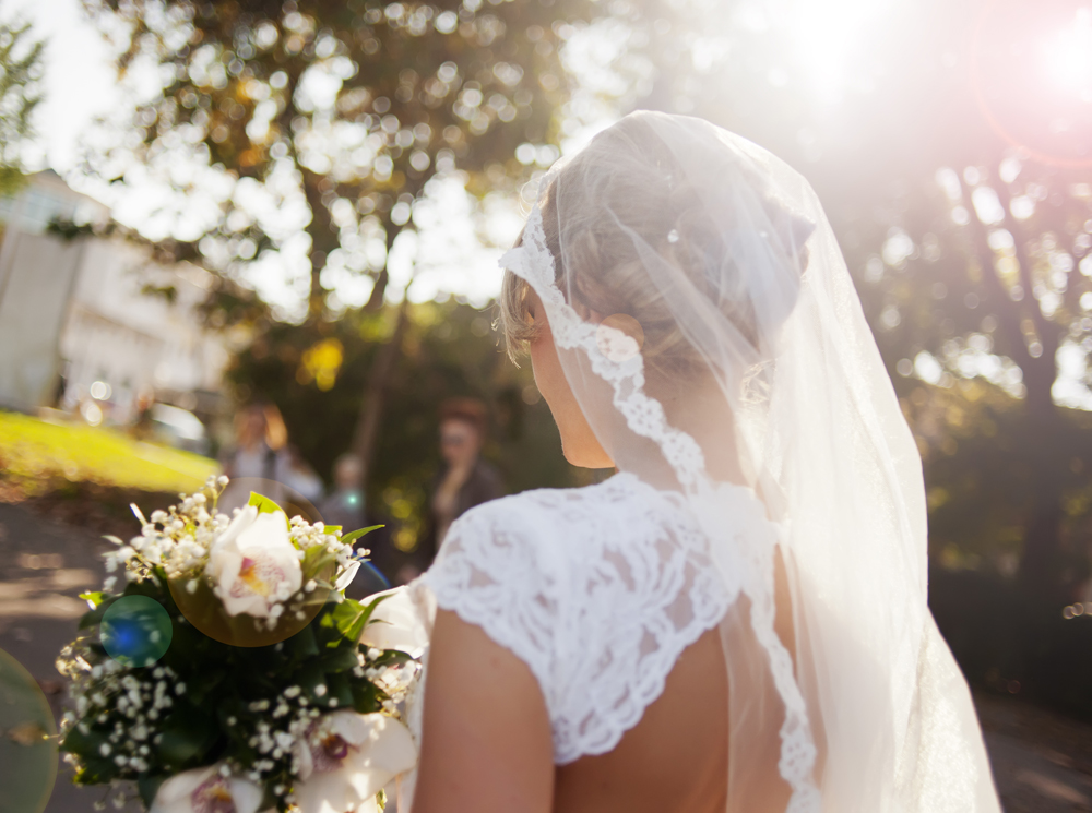 С вышивкой все, оказывается, еще проще: ей необходимо быть либо такой же, как на платье, либо вообще не быть. Так, крупные камни можно уравновесить вышивкой бисером на фате, которая будет слегка поблескивать, а золотые или серебряные узоры можно поддержать более тонким кантом по краю фаты.