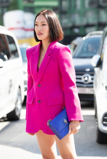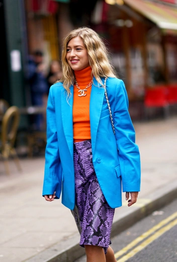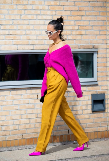 Вместо взрывных сочетаний радужной палитры или комбинаций нескольких неоновых цветов попробуйте разные тональности одного цвета. Например, к яркому синему жакету добавьте нежно-голубые брюки – наряд будет интереснее и многограннее, чем монохромный аутфит, при этом образ не будет слишком броским и чрезмерно привлекающим внимание.