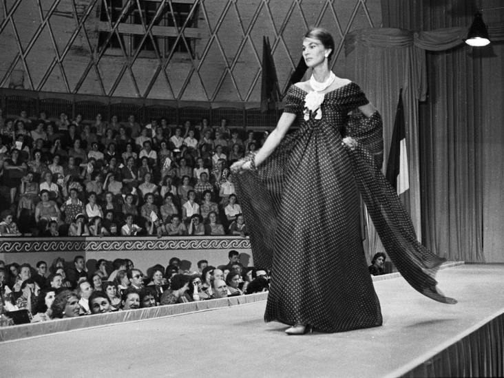 Поэтому, когда в 1959 году в Москву прилетела команда бренда Christian Dior во главе с Ивом Сен-Лораном, местные модницы были впечатлены. Как прошел первый показ в истории СССР и чем он запомнился?