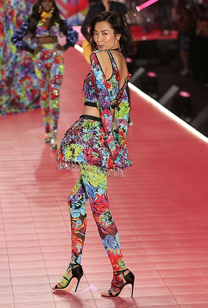 В этом году зрителей вновь порадовала знаменитая подиумная тройка — Кендалл, Белла и Джиджи. В шанхайском показе 2017 года младшая Белла участвовала одна, потому что старшей сестре отказали в китайской визе, а Дженнер пришлось пропустить показ намеренно — у нее на тот момент был эксклюзивный контракт с брендом-конкурентом La Perla. Теперь пройтись в белье на легендарном шоу получилось у обеих сестер Хадид вместе с Кендалл. После показа Джиджи рассказала, что на этот раз крылья были особенно тяжелы — конструкция за спиной модели напоминала огромный парашют.