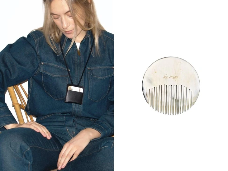 Теперь карманный гребешок не прячут в сумке, а носят на виду, как дорогое украшение: на кожаном шнуре под пиджаком, с белыми рубашками или с вечерним платьем без бретелек. Из локальных брендов отметим гребень Lera Treyger, сделанный из рога буйвола, — к нему идет кожаный чехол со шнурком на шею. А еще видели разработки марки Lhasa — серебряные гребешки дизайнер Елизавета Калинина готовит вместе со стилистом Машей Михайловой. Ждем запуска!