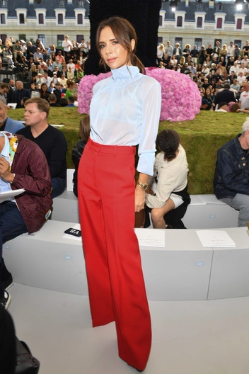 Колористы предлагают нам еще один работающий способ — визуально отделить верх от низа контрастирующими цветами. Здесь отлично сработает даже стандартная комбинация «белый верх — черный низ». Этим приемом регулярно пользуется Виктория Бекхэм, которая делает талию еще уже, а ноги — длиннее.