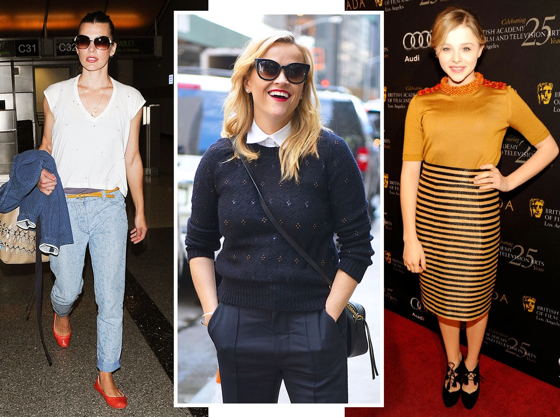 Брюки, джинсы, юбки с завышенной линией талии замаскируют проблемные места и сделают ее визуально тоньше. Главный критерий выбора ткани — она не должна быть слишком тонкой. Но и не слишком фактурной. Как мы уже говорили, бархат, вельвет и прочие мягкие ткани, наоборот, добавят объема. Отдаем свой выбор плотным гладким материалам без дополнительного декора в районе пояса, не сильно облегающие по длине. Пример: брюки палаццо, джинсы прямого фасона или расклешенные к низу, юбки А-силуэта, полуприлегающие, юбки с запахом, ассиметричные юбки.