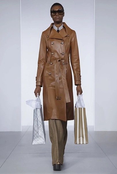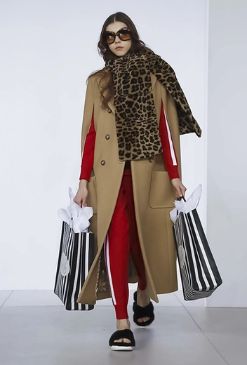 Полоски в коллекции было меньше, и в основном она служила лишь фоном для стилистических экспериментов дизайнера. Тельняшками на моделей, конечно, никого не удивить, а вот сумки-имитации бумажных пакетов из брендовых магазинов выглядят весьма многообещающе.