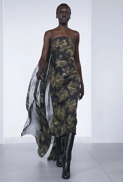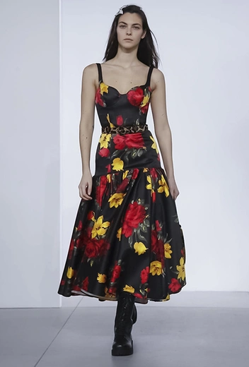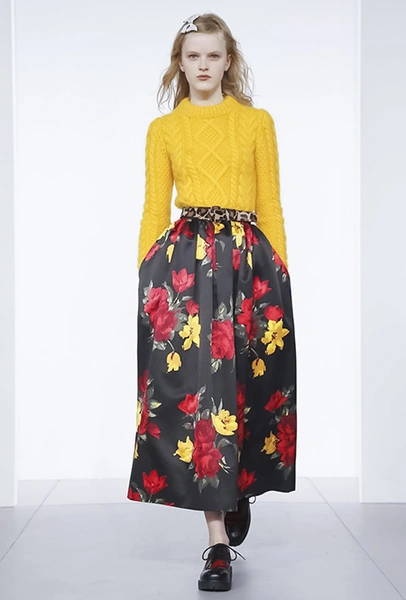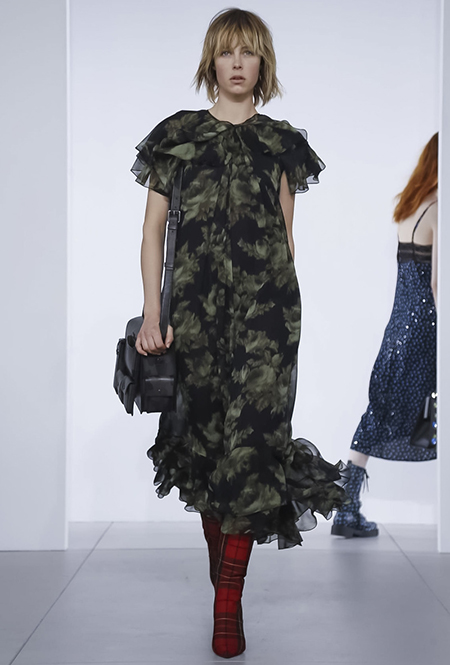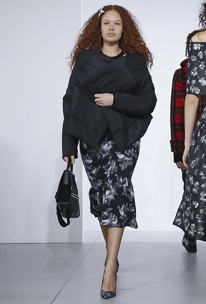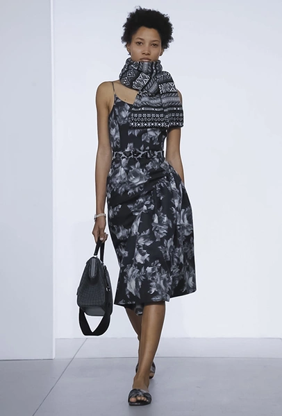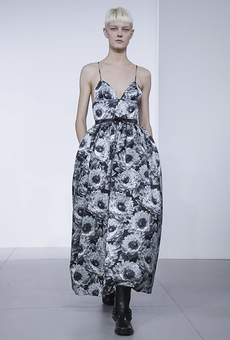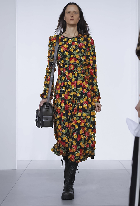От мелкого мильфлера – до огромных бутонов: цветов в осенней-зимней коллекции Майкла Корса было действительно много. Все они имеют черный фон, что только играет им на пользу, избавляя в будущем сезоне свою хозяйку от переживаний за маркий белый.