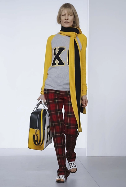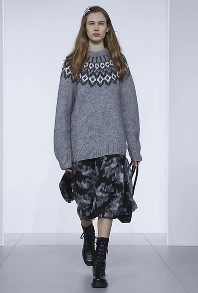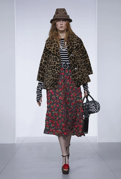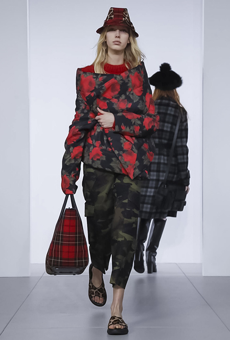 Как и в любом оркестре, соло на подиуме в Линкольн-центре встречалось крайне редко. 75 образов из новой коллекции – это дуэты, трио и даже квартеты, сложенные из самых привычных принтов в непривычных сочетаниях. Цветочное платье на подиуме оказывается покрыто пальто, раскрашенным в классическую красно-черную «шотландку», леопард на шарфе соседствует с ахроматическими полосками на прямоугольных шоперах, а камуфляжный принт на остромодных бойцовских штанах – с гиперболизированными психолелическими красными розами на куртке. Как все это вместе сочетается, известно одному Корсу. Мы лишь констатируем факт: осенне-зимняя коллекция Michael Kors Collection – это стройная симфония, а не бессвязная какофония.