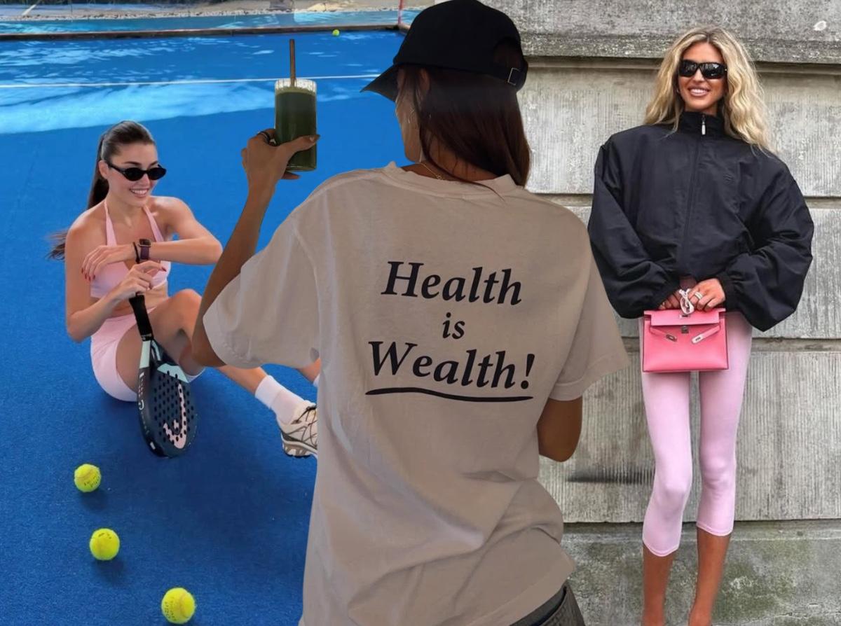 На фоне всего этого неудивительно, что эстетика Sporty & Rich стала одной из самых цитируемых. Бренд Эмили Оберг вырос из мудборда с ретро-спортивными картинками в полноценную lifestyle-вселенную: толстовки и свитшоты с надписями вроде «Health is Wealth», шорты, как у университетской команды 80-х, бейсболки, которые хочется носить и в спортзал, и на летний променад в парк.
