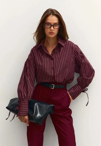 Black Cherry особенно хорошо вписывается в тренд на «интеллектуальную базу» — расслабленные, но собранные образы на каждый день. Объемный свитер или жилет в вишнево-черном оттенке, прямые джинсы, базовые кроссовки или лоферы и структурированная сумка в том же оттенке. В таком случае цвет выглядит как естественное продолжение вашей базы.