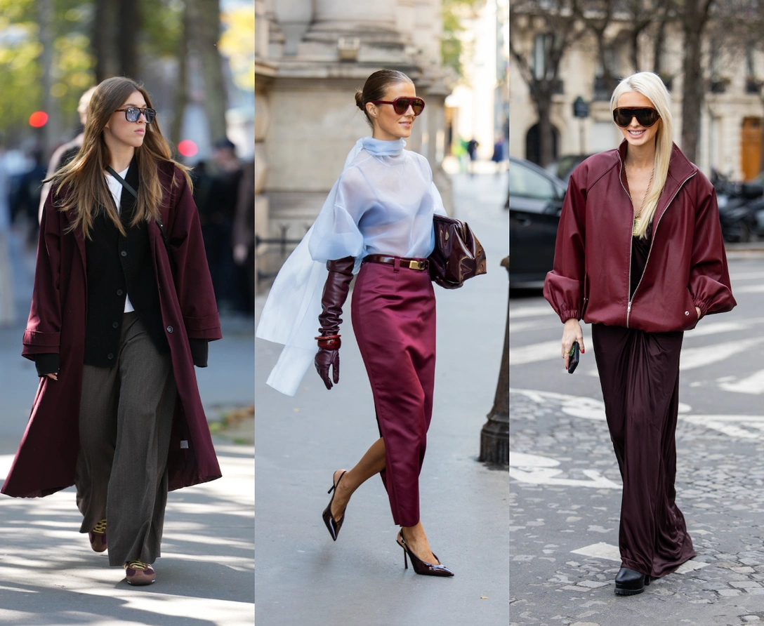 Лучший способ раскрыть Black Cherry — «рассыпать» его по разным фактурам в одном образе, чтобы цвет играл, а не превращался в плоское пятно.