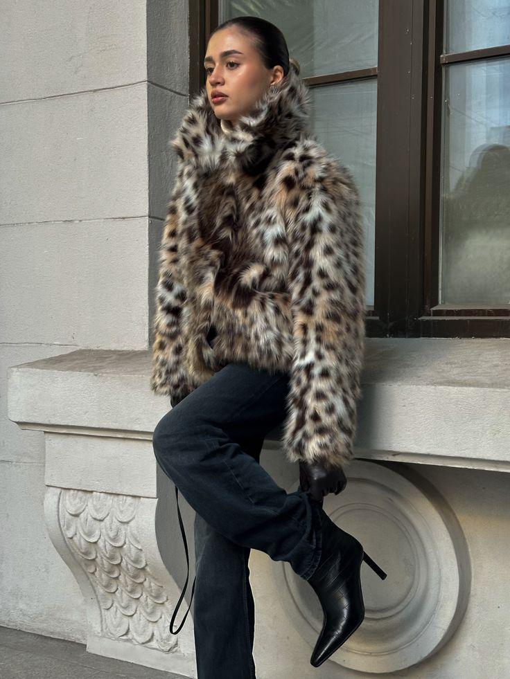 Ищите укороченный силуэт без лишнего объема — он выглядит визуально дороже и не перегружает образ. Самый универсальный вариант — короткая шуба до середины бедра с мягким, слегка размытым принтом, будто слегка выцветшим. Такой леопард выглядит более утонченным и гармоничным в городском зимнем пейзаже.