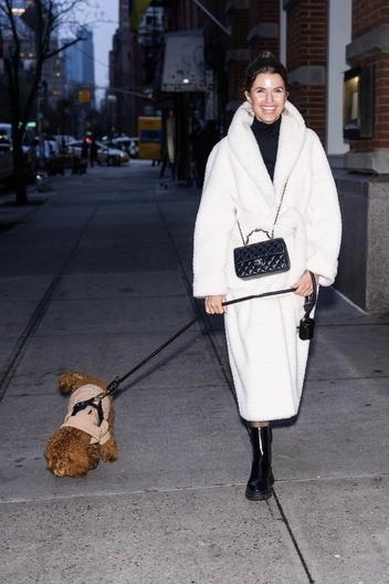 Отличная альтернатива пуховику и парке — меховая дубленка. В такой можно не только на прогулку с детьми, но и на мероприятие. Рекомендуем выбрать дубленку в коричневом оттенке и дополнить ее обувью в том же цвете, чтобы образ выглядел завершенным.