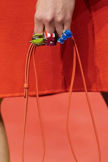 У Dior появились массивные перстни практически на каждом пальце руки, по форме напоминающие разные геометрические фигуры и абстрактные объекты. Они гармонично вписались в чрезвычайно яркую коллекцию Марии Грации Кьюри, которая стала так популярна среди модниц и знаменитостей. Интересно, что креативный директор французского Дома моды предлагает сочетать такие броские и акцентные украшения друг с другом, добиваясь максимально игривого и неформального настроения в образе. Яркое массивное кольцо должно украшать каждый палец руки, а иногда даже сочетаться с другими на одном пальце.