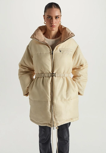 Если у вас широкая талия и бедра, ваш тип фигуры — «прямоугольник». Здесь главная задача — подобрать вещи, которые будут визуально создавать женственные изгибы. Избегайте прямых моделей, ваш идеальный пуховик должен быть приталенным. Берите пример с Натали Портман: актриса придает плавность и грацию своей фигуре с помощью разных оттенков в образе и делает акцент на бедра. Знаменитость носит куртки, сшитые из двух блоков цвета или материала. Мы же предлагаем присмотреться к курткам с драпировкой.