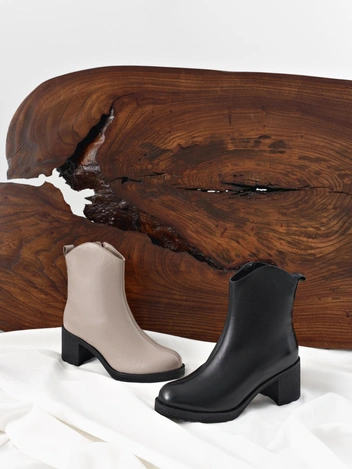 Черные ботильоны — классика жанра, но если ваш гардероб разрешает выбирать светлую обувь, тогда присмотреть к полусапогам в пудровом оттенке, которые также будут безупречно смотреться с темной одеждой и черными колготками.